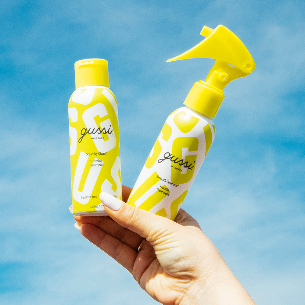 WHETHER YOU HAVE CURLY, COARSE, FRIZZY, FINE, WAVY, OR STRAIGHT HAIR, Gussi is here for you. Trust us, you’ll want these keratin hair treatment results. Air dry your hair for more natural results, minus the frizz! Or go ahead and heat style for the sleekest results. All shimmer and shine – in way less time. Gussi will leave you with THE SMOOTHEST, MOST MANAGEABLE VERSION OF YOUR HAIR – we want you to be you, and that means however you want to rock your locks.